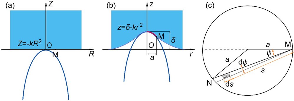 图1. 刚性抛物面深压入半空间弹性体示意图
