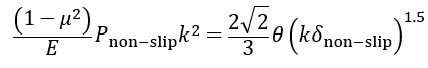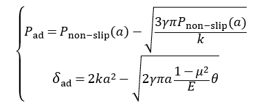 进一步参考了JKR方法,在无滑移-大变形模型的基础上考虑粘附力,得到了无滑移-大变形粘附模型:
