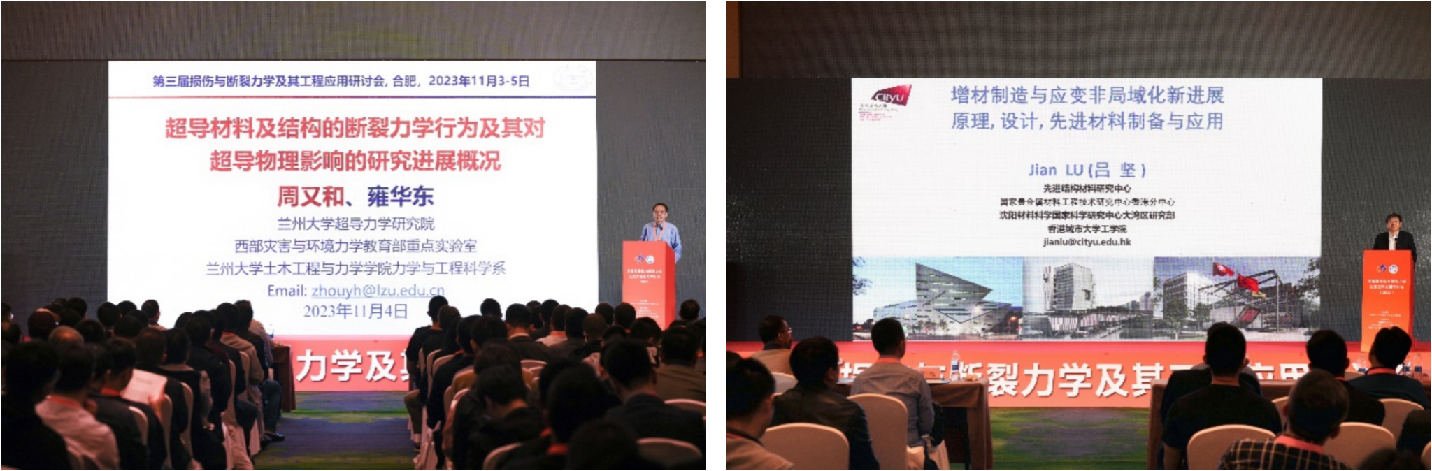 开幕式结束后,兰州大学周又和院士和香港城市大学吕坚院士分别作《超导材料及结构的断裂力学行为及其对超导物理影响的研究进展概况》《增材制造与应变非局域化新进展:原理、设计、先进材料制备与应用》两个大会特邀报告。